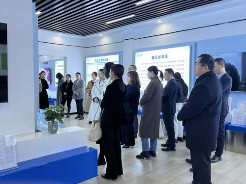 塾友一行首先參觀了公司展廳,講解員就公司企業文化核心價值體系、主營業務、核心技術、專家團隊、科技成果等方面向各位塾友做了詳細講解,并重點介紹了公司企業文化核心價值體系,包括對“誠信、健康、利他”核心價值觀的解讀,利他;圍繞“一切為了員工和客戶的幸福”的經營宗旨詮釋的公司幸福觀;圍繞著“員工”和“客戶”兩個原點,提煉的“員工幸福”和“客戶幸福”0-100分的標準和行動方案。各位塾友對欣格瑞公司的企業文化、經營理念、科技創新給予高度評價。