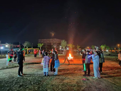 19日晚上,大家在教練的帶領下點起了篝火,許下了美好的愿望,隨后進行了舞蹈和游戲。大家盡情歡笑,暢談過去,展望未來。