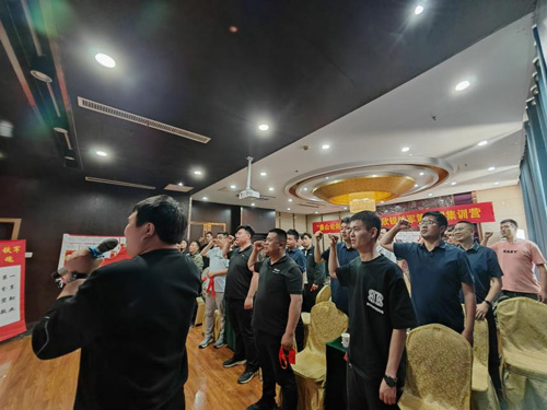 20日上午,“泰山論劍 目標沖刺”營銷PK活動正式啟動。在老兵們的見證下,為新加入“欣銳鐵軍”的20位新兵舉行了莊嚴的入軍儀式,眾將士們滿懷激情在總指揮官張建賓的帶領下共同宣讀了“欣銳鐵軍”軍魂,共同重溫了“欣銳鐵軍”誓詞,鏗鏘有力地宣誓彰顯了鐵軍成員的錚錚鐵骨和團結協作、使命必達的精神!為了讓新兵們對“欣銳鐵軍”有更加深刻的認識,公司總裁田民格激昂宣講了“欣銳鐵軍”建軍的初心和使命。田總分享后,鐵軍眾將士的臉上都洋溢起驕傲的神采,都為自己能成為鐵軍的一員感到自豪!