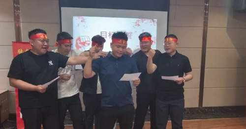 接下來播放了一段感人的《他們說》,這是各戰隊的隊長提前精心準備的。視頻中既有客戶給予的真誠認可,也有家人飽含牽掛的叮嚀,這些音容笑貌如同溫暖的爐火,給予了鐵軍將士們慰藉與力量,為他們向著目標永不停歇、不斷攀登的征途注入了源源動力。伴隨著感動與溫暖,張總公布了本次PK活動的具體規則。三聲號角過后,大家依次上臺進行目標宣誓,每個人都簽下了自己的目標承諾書,誓必達成!