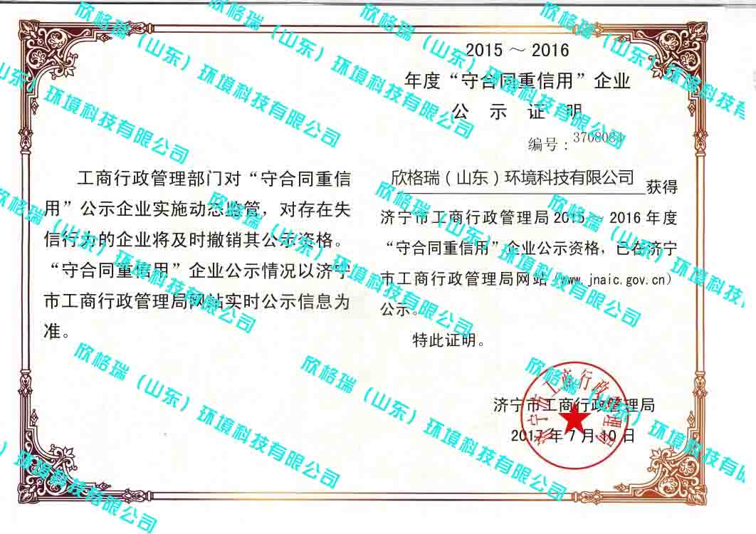 2015-2016年度守合同重信用企業